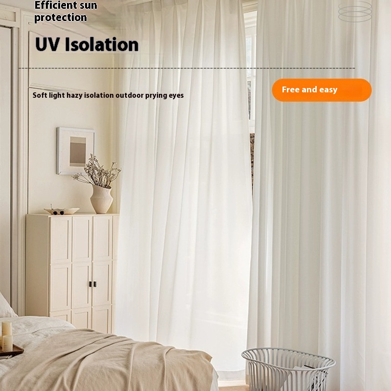 Modern Simple Diamond Yarn Anti-scratch Wear-resistant No Hook Light-transmitting Non-transparent White Yarn Living Room Bedroom Curtain Yarn Finished Product