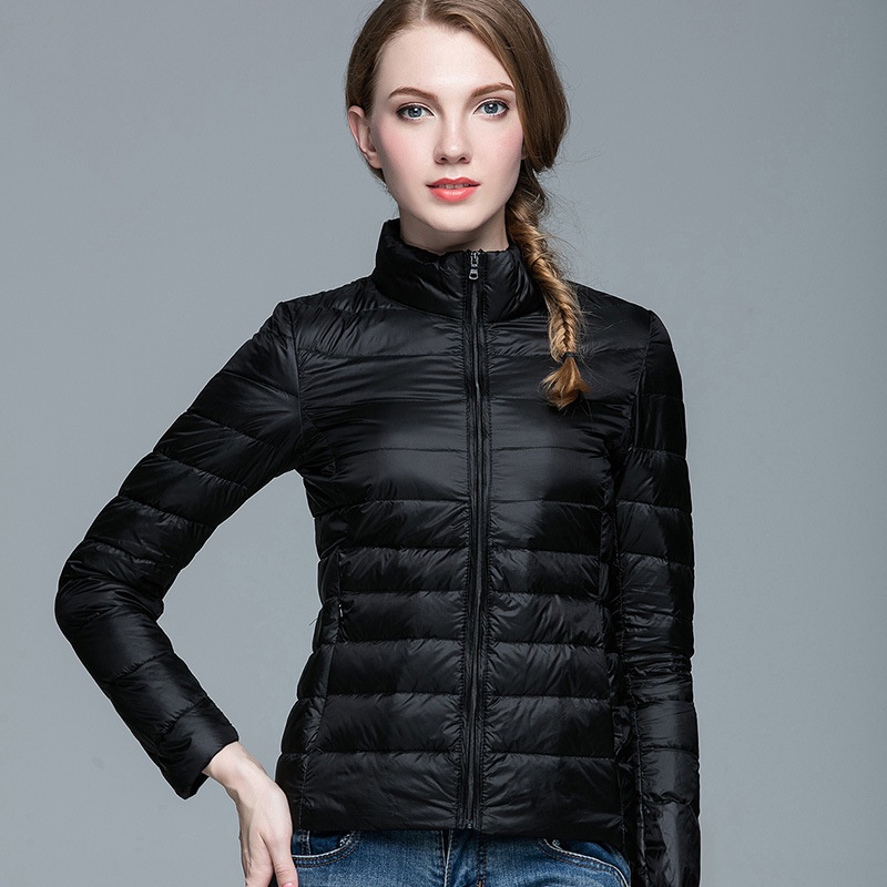 Autumn And Winter Korean Style Thin Down Jacket Short Style Women's Stand Collar Large Size Light Jacket Basic Style PH003