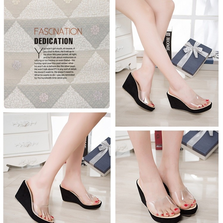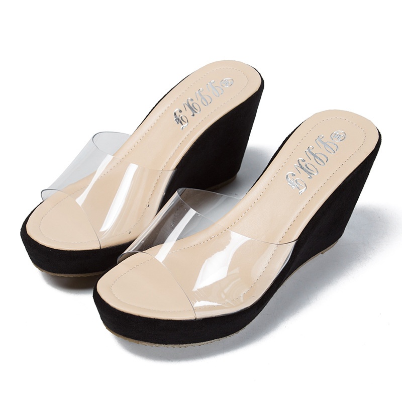 One Piece Drop Shipping Summer Super High Wedge Heel8cm Women's Sandals Transparent Glass Glue Large Size43 Small Size30