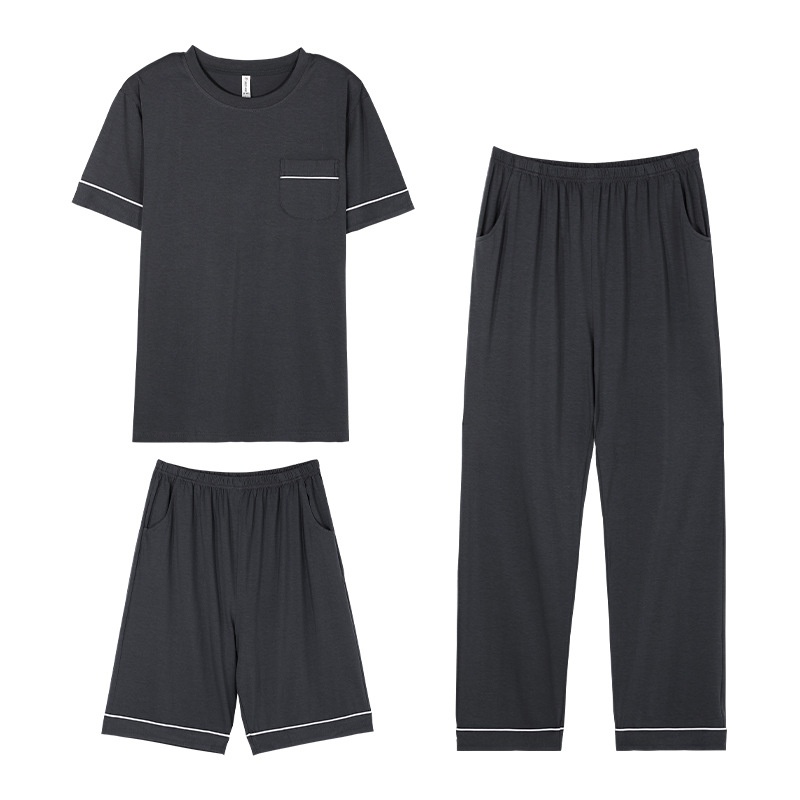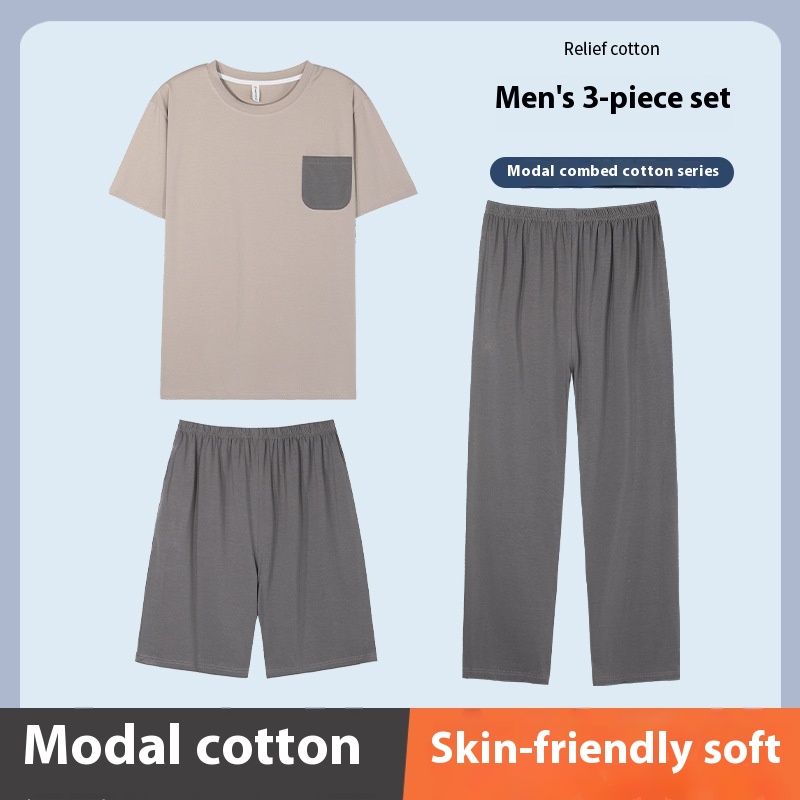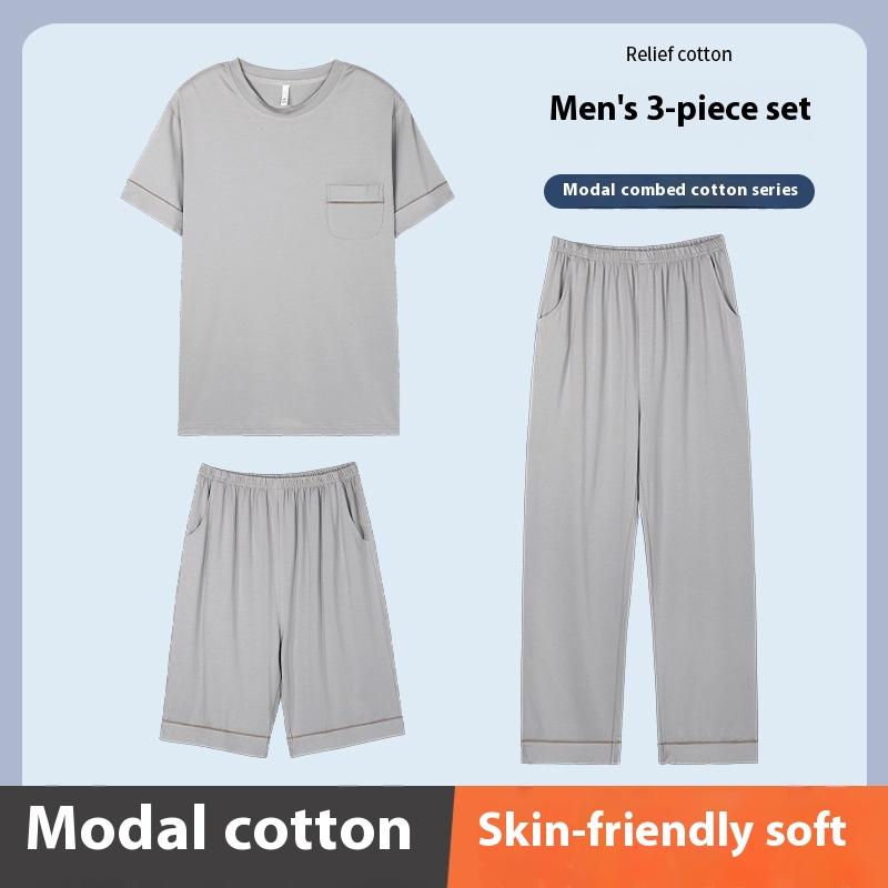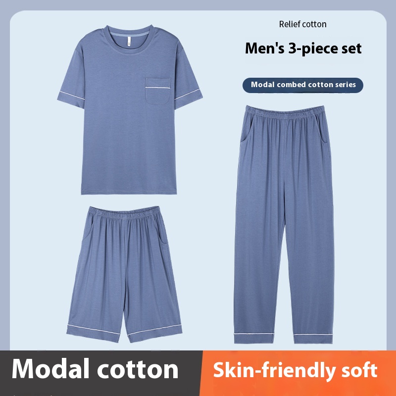 Modal Pajamas For Men In Summer,Comfortable And Thin Home Clothes,Douyin,Plus Size5 XLThree-piece Set