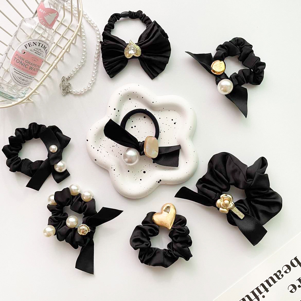Pearl Bow Hair Rope Female High-grade Satin Ponytail Small Intestine Circle Korean Simple High Elastic Hair Rope Rubber Band