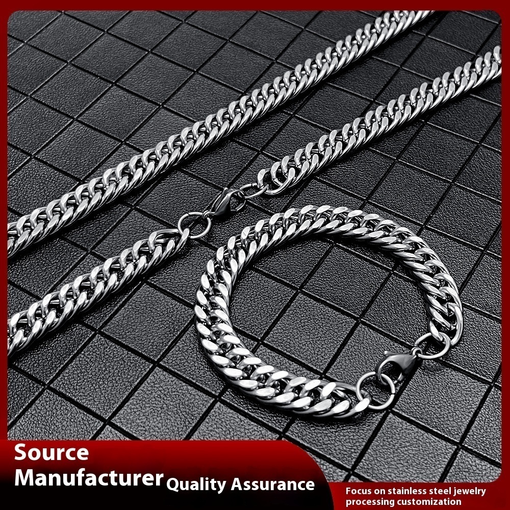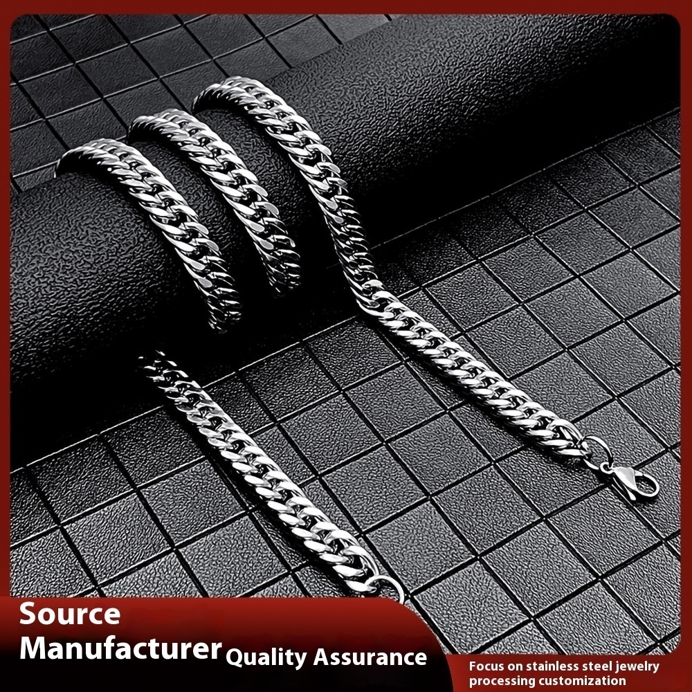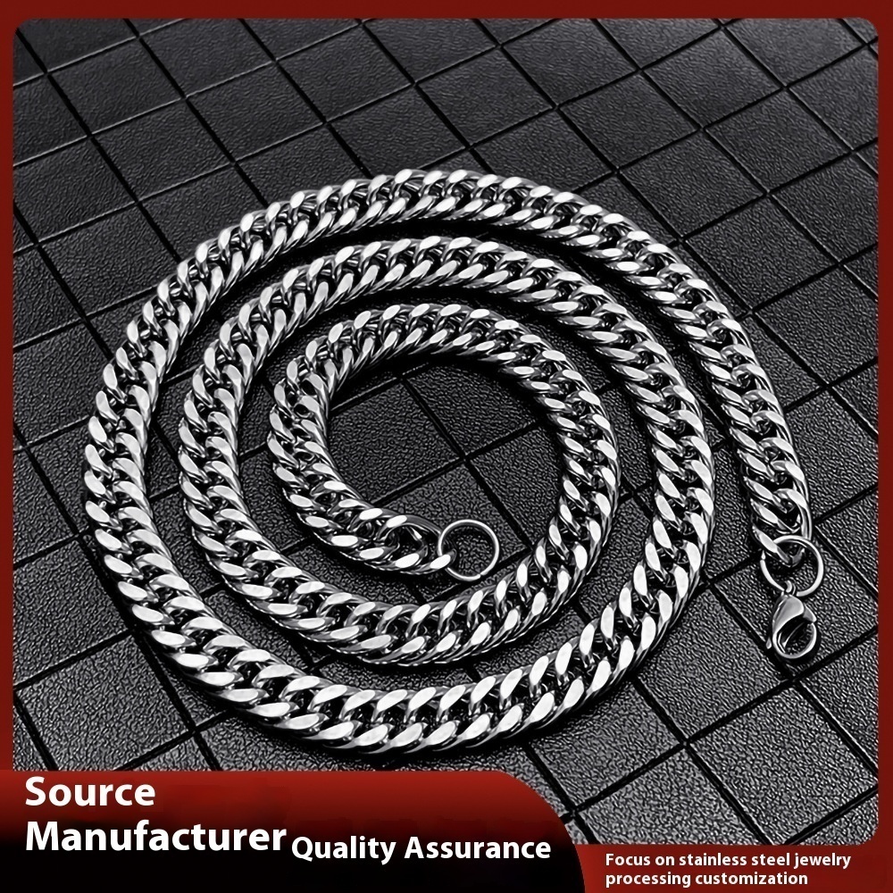 Titanium Steel Cuban Chain Grinding Chain Necklace Stainless Steel Lobster Clasp Grinding Chain Men's Domineering Clothing Accessories