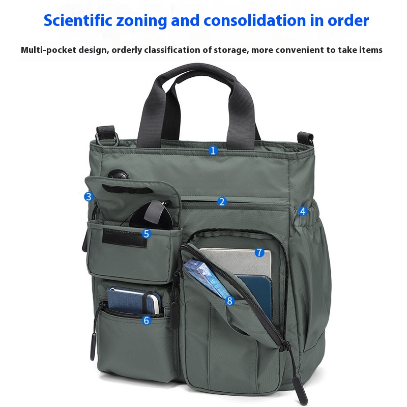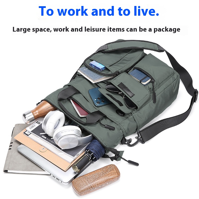 Business Shoulder Bag Men's Business Trip Portable Light Casual Multi-layer14-inch Computer Large Capacity A4 Document Messenger Bag