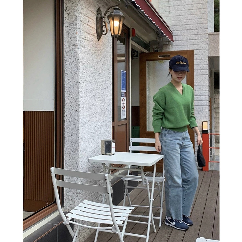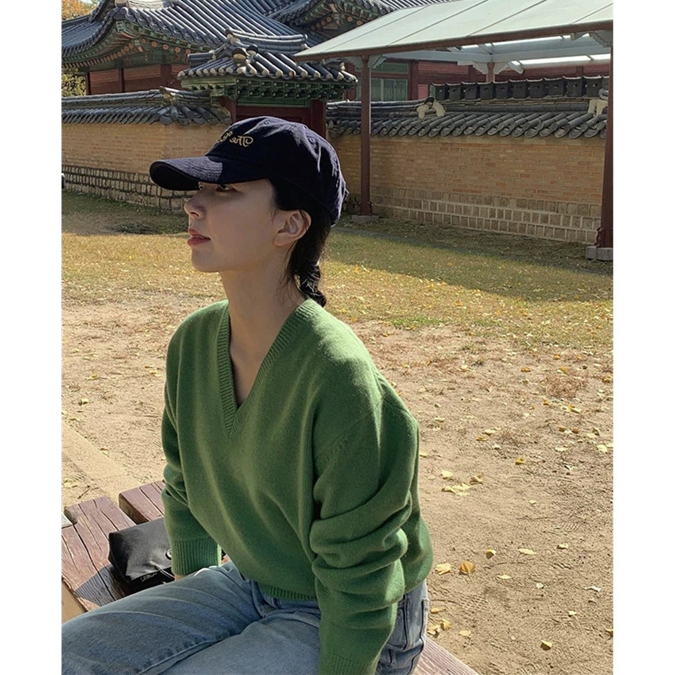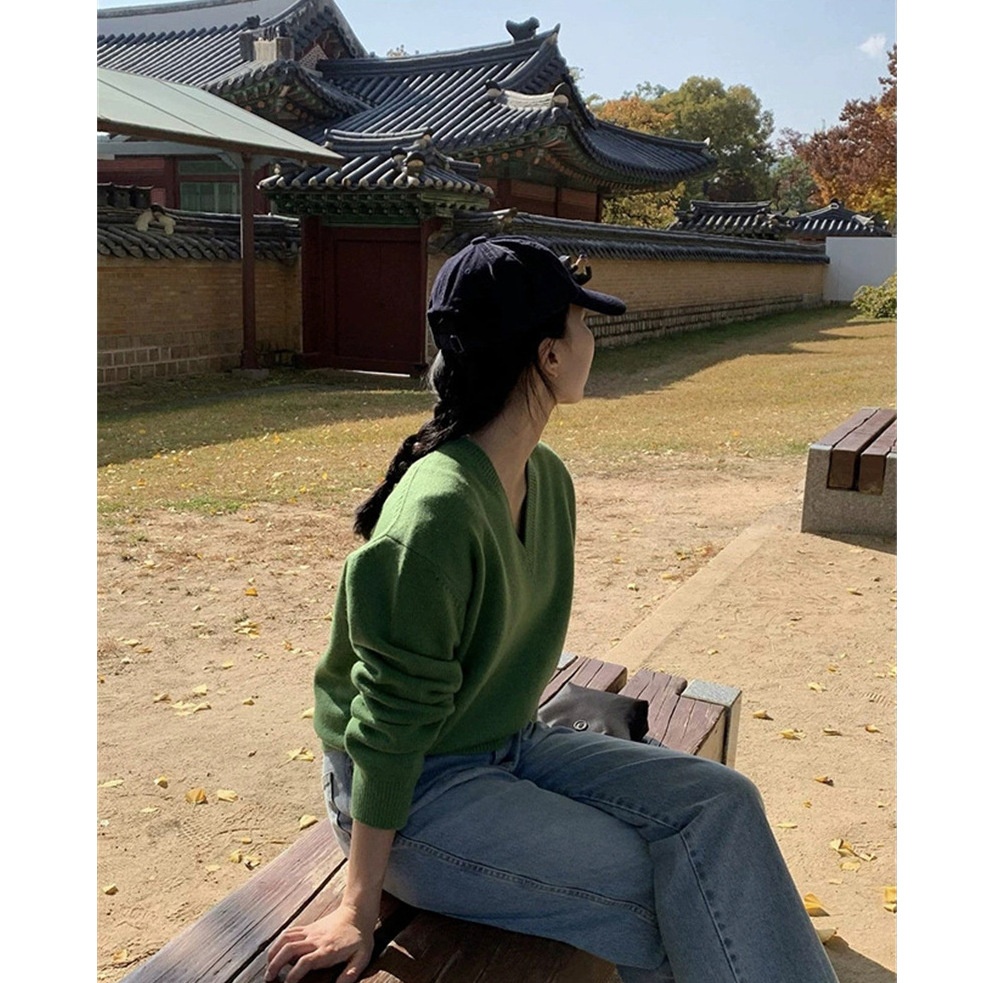 Winter Korean Designer Lazy Casual Simple Solid Color Pullover V-neck Drop Shoulder Knitted Sweater