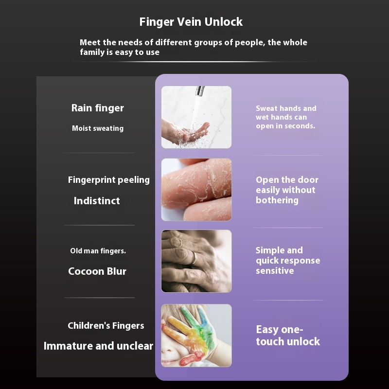 Light Luxury Biometric Finger Vein Recognition Smart Lock Home Multi-function Security Anti-theft Lock Wi Fi Remote Control Password Lock