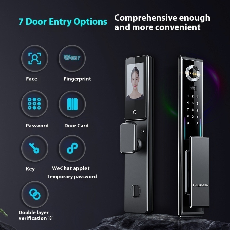 Aviation Aluminum Carved Smart Lock3 DFace Recognition Palm Vein Unlocking Active Monitoring Plus Video Intercom Fingerprint Lock