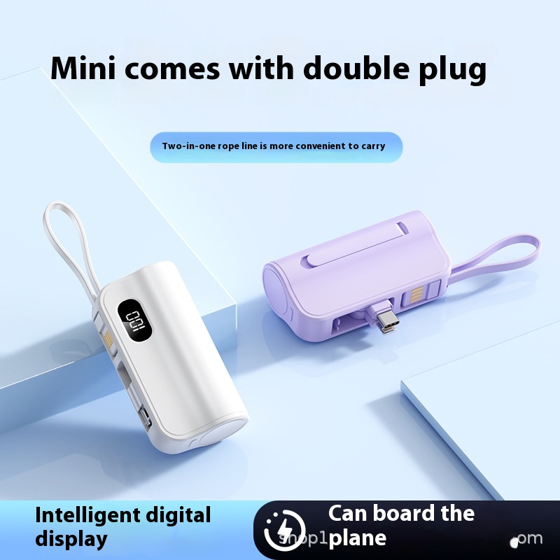 Capsule Power Bank With Hidden Double Plugs,Small And Portable,With Built-in Wire,Mobile Power