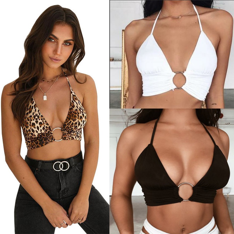 Leopard Print Sexy Halter Neck Ring Tie Navel-baring Leopard Print Suspender Sleeveless Vest