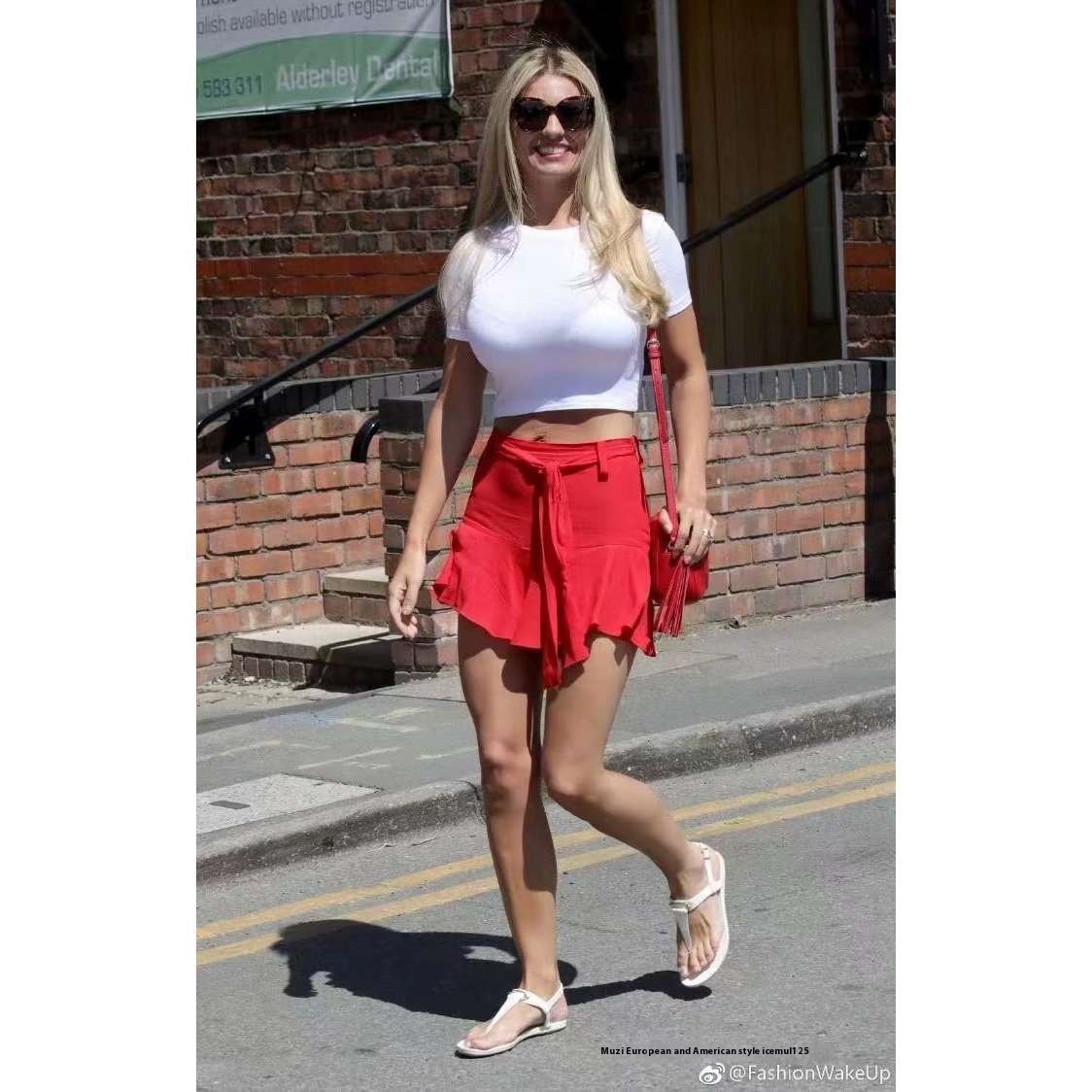 American Style Navel-baring Short-sleeved Round-neck T-shirt For Women In Summer High Waist Slim Fit European And American Style Hot Girl Short Tops