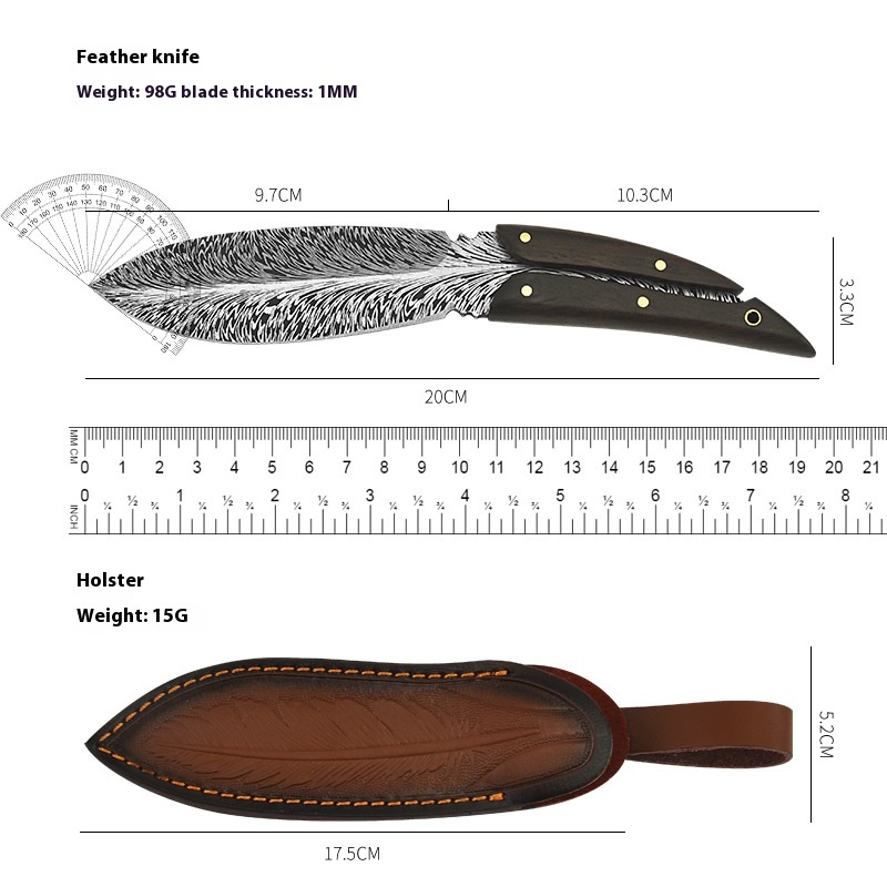 Feather Knife Slicing Meat Cutting Outdoor Knives Camping Collection Survival Straight Knife