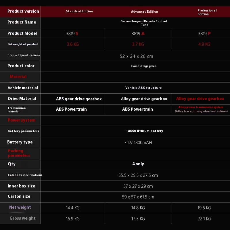 Henglong2.4 GGerman Leopard Remote Control Main Battle Tank Infrared Battle1:16 Military Model Toy