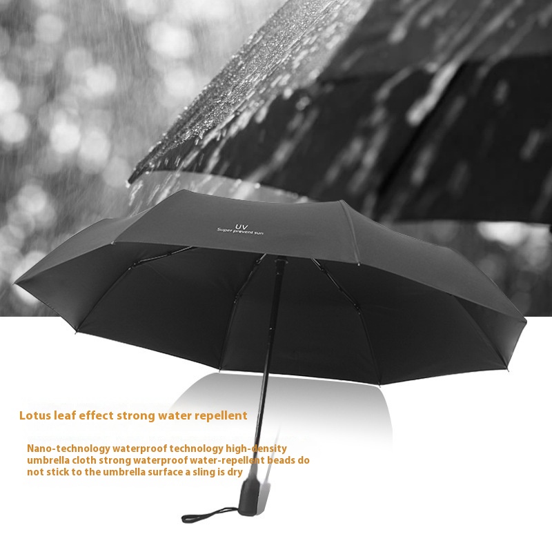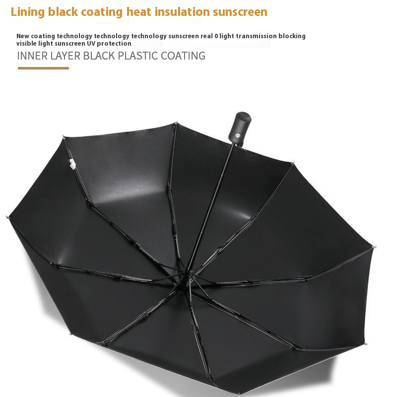 Fully Automatic Sun And Rain Umbrella:Foldable Black Vinyl Sunshade And Rain Umbrella