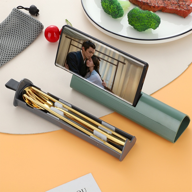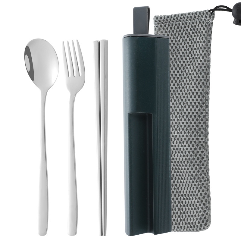 304 Stainless Steel Spoon Fork Chopsticks Three-piece Set Pull-out Portable Tableware Creative Tableware Set Company Gift