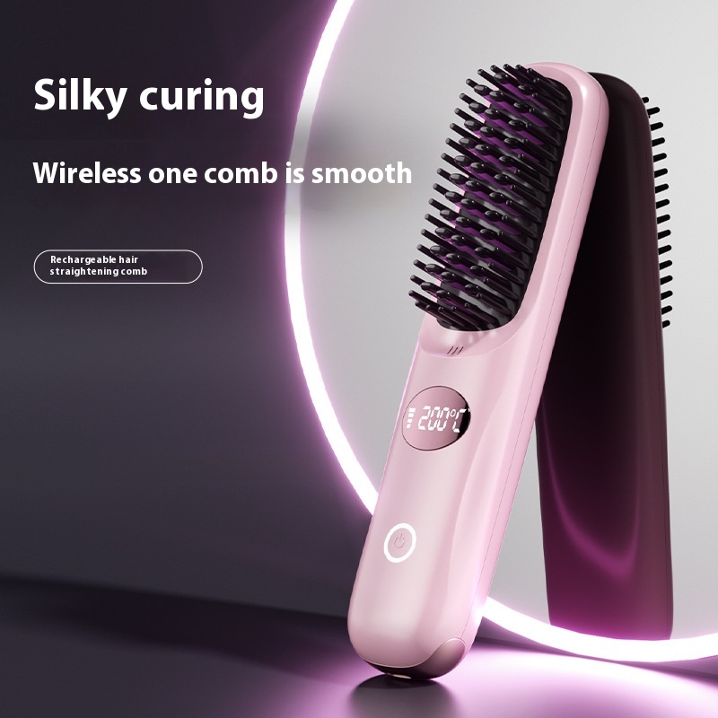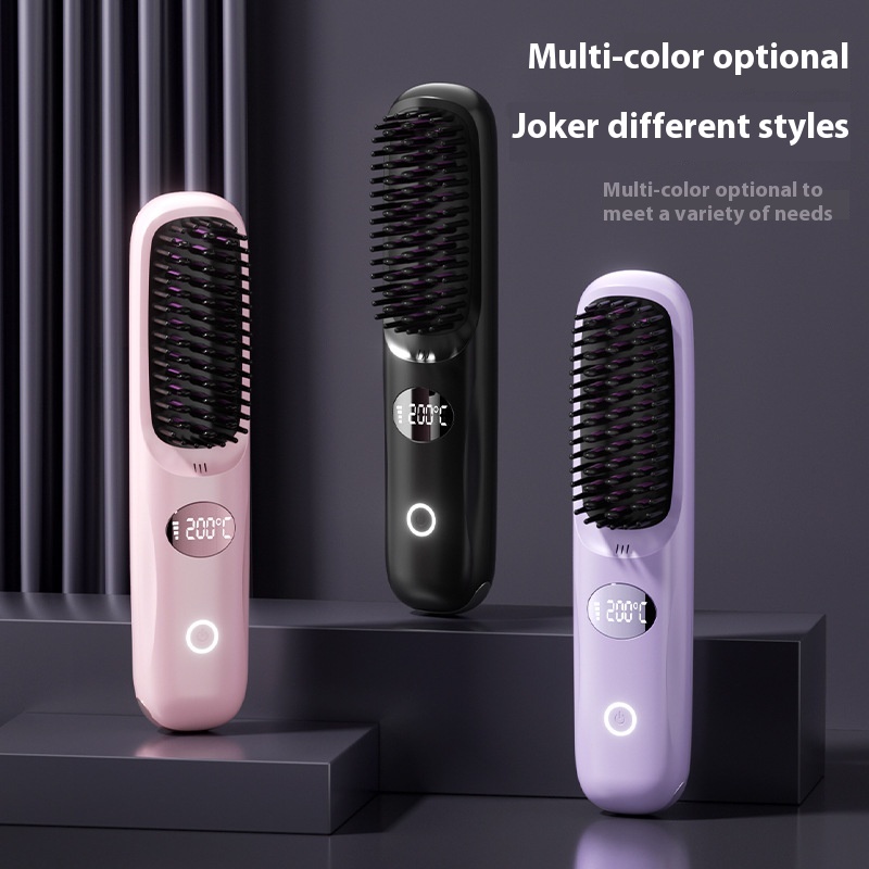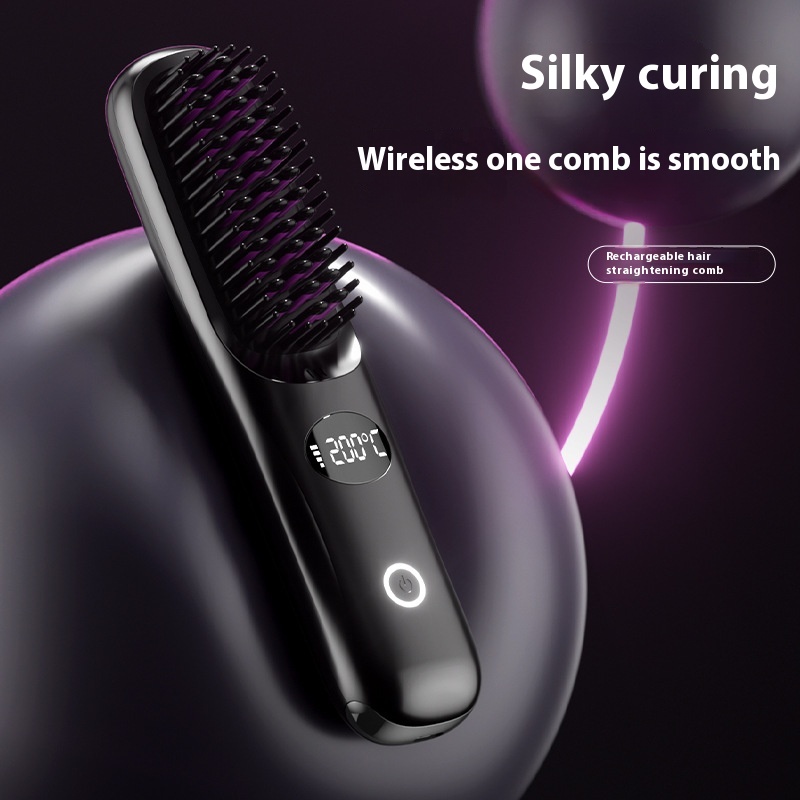 LCDUSBCharging Ceramic Heating Electric Comb Hair Straightener Wireless Portable Straight Hair Comb