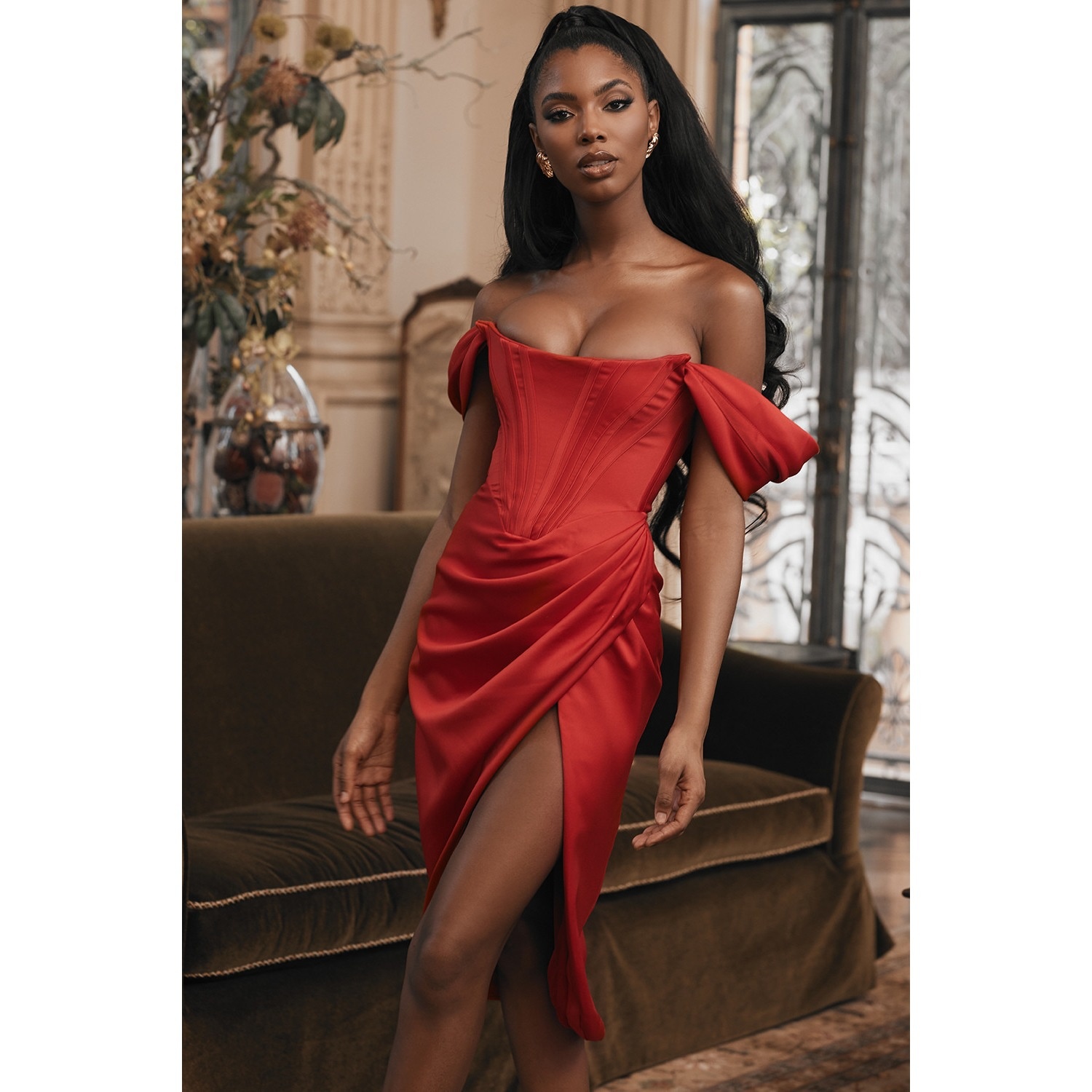 Satin Suspenders Sexy Slit One-shoulder Dress Sexy Bodycon Dressплатье
