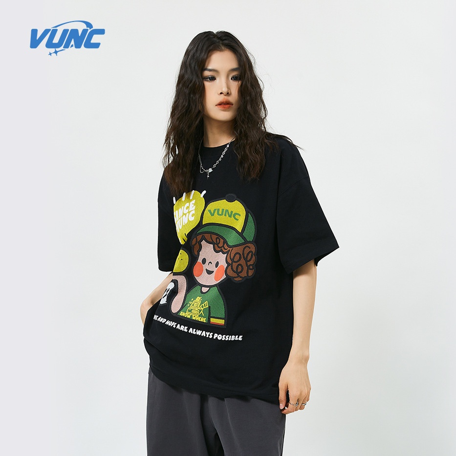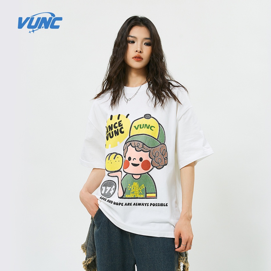[Li Chen NIC]VUNCImitation Embroidery Suede Foam Bread Boy Short-sleeved T-shirt270 GHeavy Loosey Brand