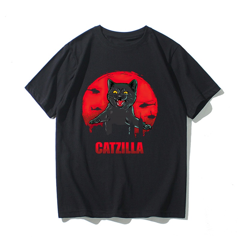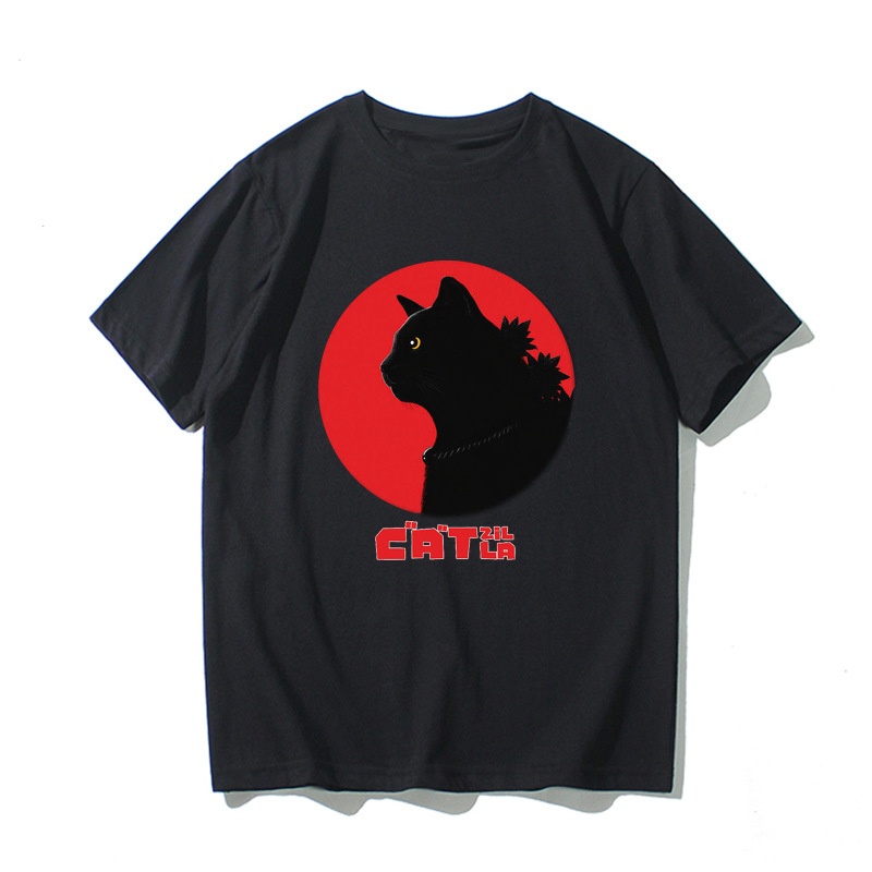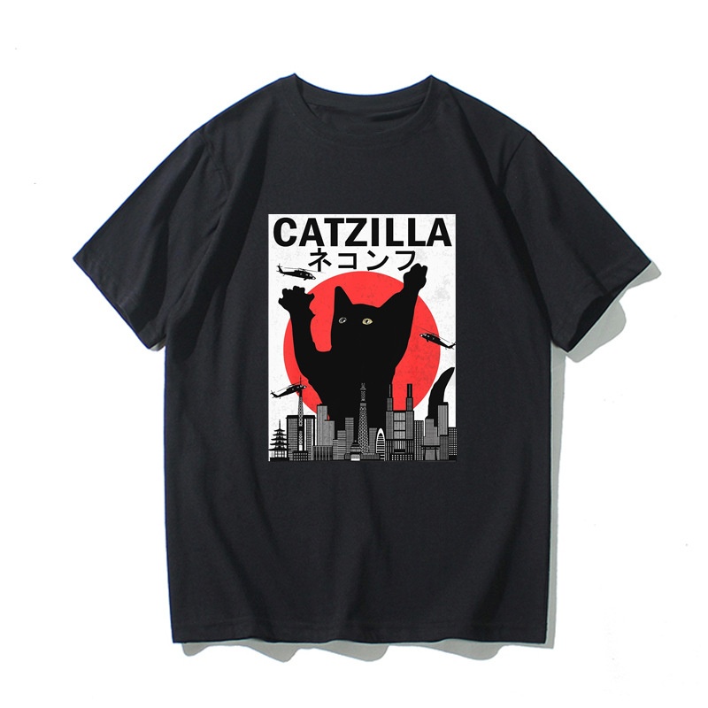 Catzilla T-shirt For Men Japanese Retro Catzilla Cat Pattern Short-sleeved Godzilla Destruction Print Clothes