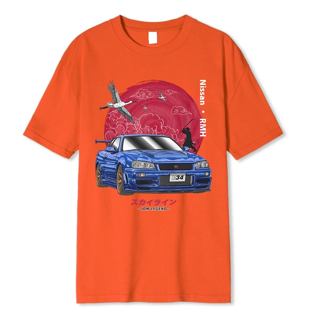 Cotton Men's And Women's Harajuku Aesthetics Oversized Funny JDMLegendary Car Nissan Skyline R34 T-Shirt