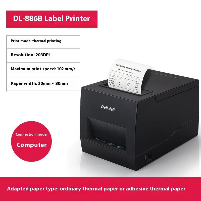 Deli D L-886 A S/886 B S Barcode Printer Thermal Self-adhesive Label Q R Code Trademark Printer