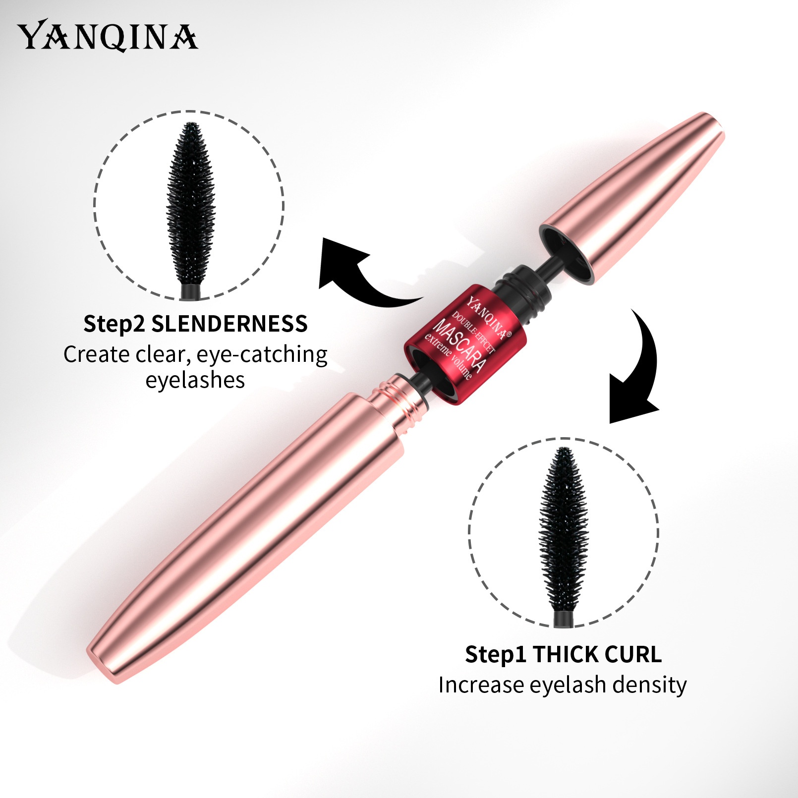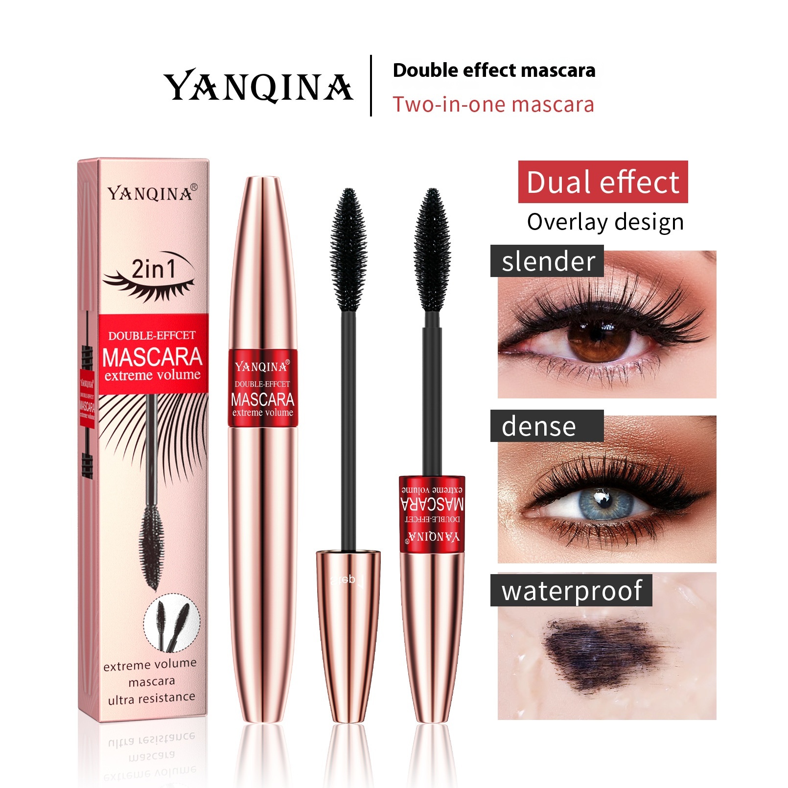 Double-effect Mascara,Long,Thick,Curled,Waterproof And Non-smudged Mascara