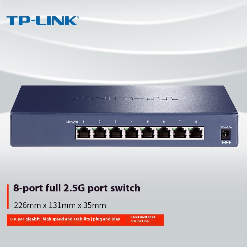 TP-LINKTL-SH10088-port Full Gigabit2.5 GNetwork Switch Home Monitoring Splitter