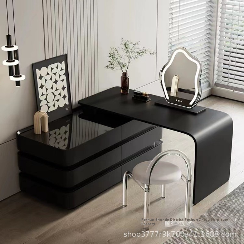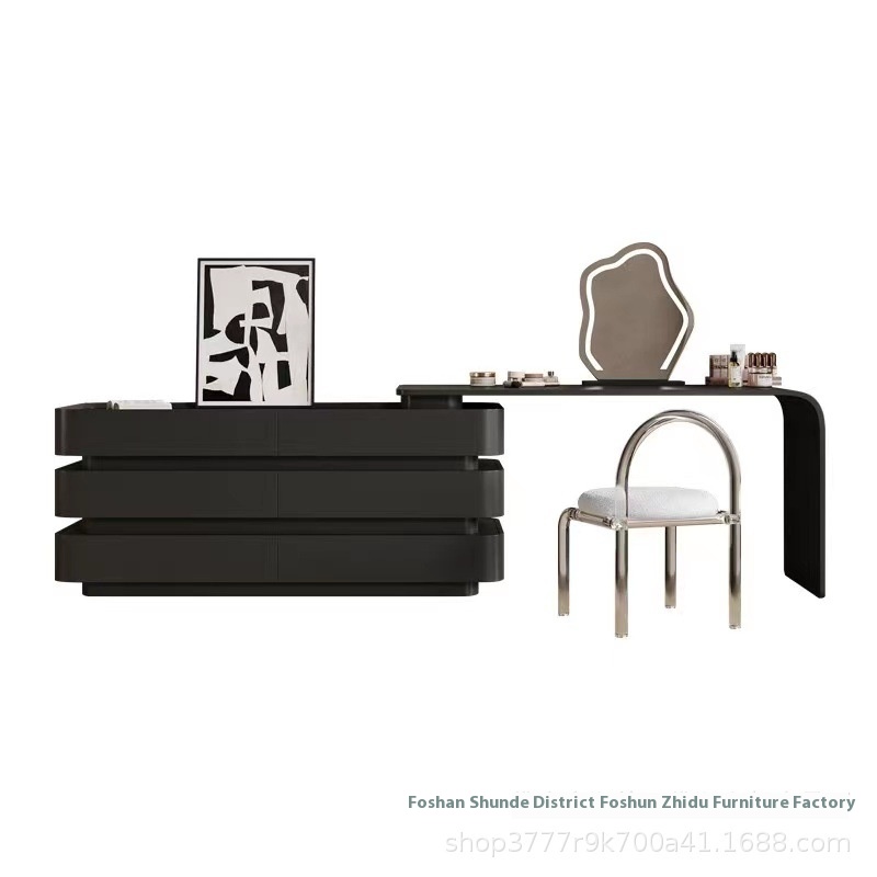 Modern Simple Black Dressing Table Drawer Integrated Italian Dressing Table Minimalist Style Bedroom Bed End High-grade Solid Wood