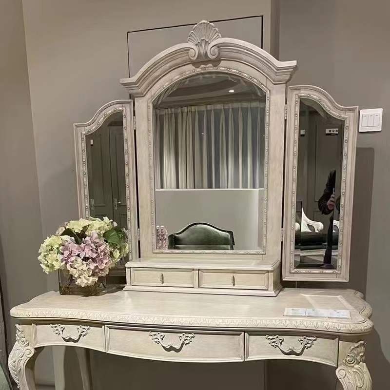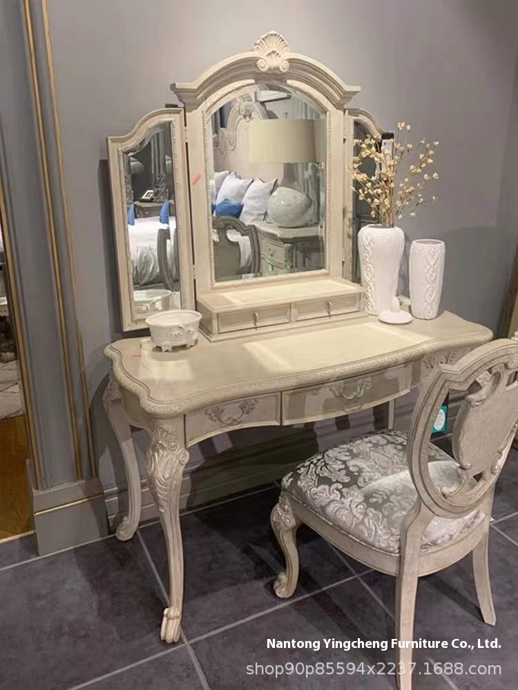American Light Luxury Solid Wood Dressing Table Combination Postmodern Simple Chair French Retro Revival Imprint Bedroom Furniture