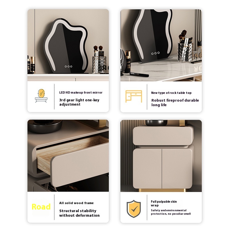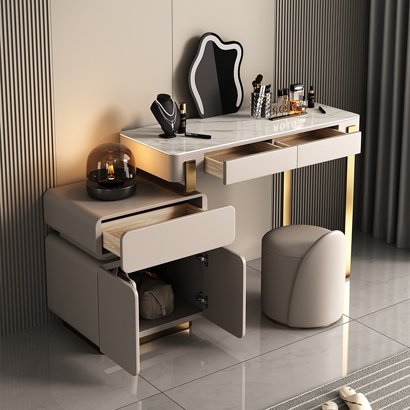 Light Luxury Dressing Table Modern Simple All Solid Wood Bedroom Dressing Table Storage Cabinet Storage Small Apartment Rock Plate Dressing Table