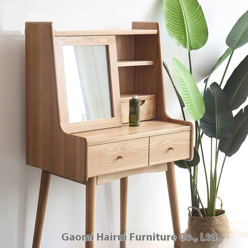 Nordic Dressing Table Solid Wood Small Apartment Simple Dressing Table Light Luxury Multifunctional Bedroom White Oak Dressing Table