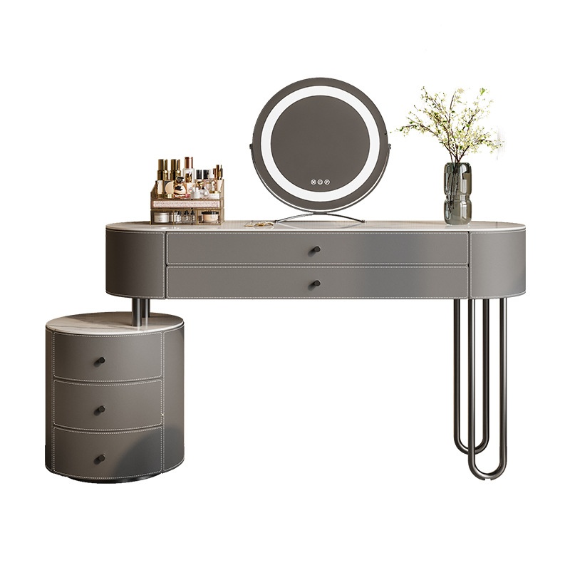 Saddle Leather Rock Slab Dressing Table Modern Simple Bedroom High-grade Solid Wood Storage Locker Integrated Dressing Table