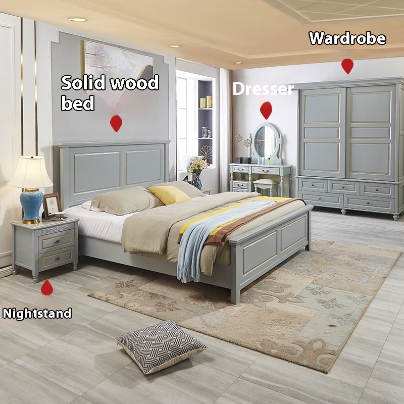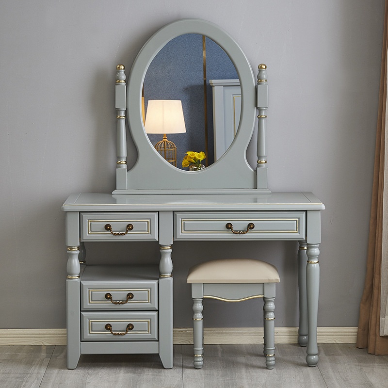 American Light Luxury Solid Wood Dressing Table High-grade Gray And Gold Furniture With Mirror Dressing Table Stool Combination European Storage Table