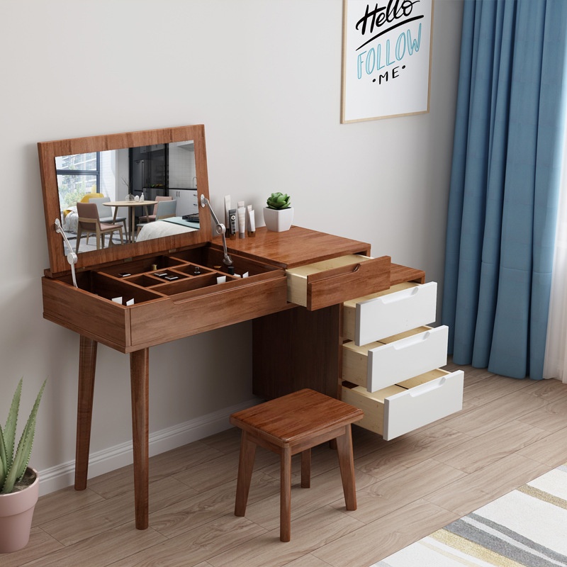Nordic Solid Wood Dressing Table Bedroom Home Storage Net Celebrity Dressing Table Simple Modern Light Luxury Small Apartment Dressing Table
