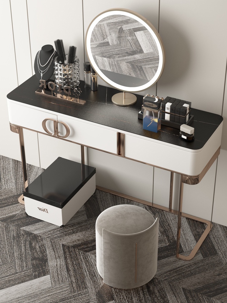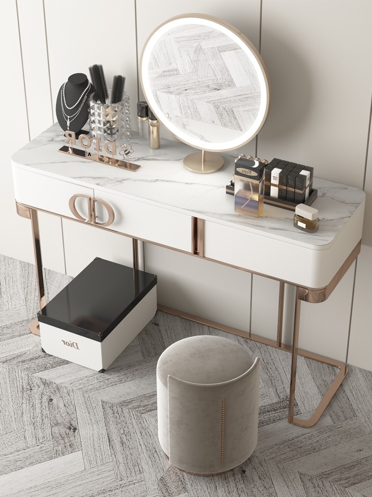 Dressing Table Light Luxury Minimalist Modern Simple Rock Slab Bedroom High-end Goddess Dressing Table With Bedside Table Writing Desk