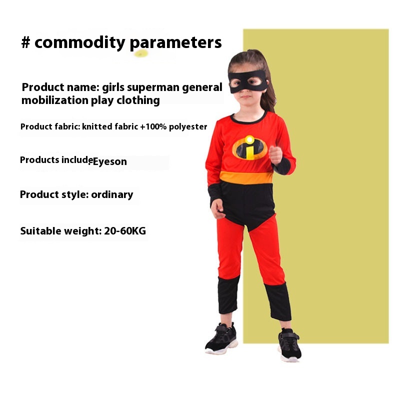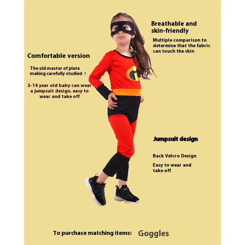Girls Incredibles Cosplay Anime Movie Jumpsuit Set Holiday Party Stage Costume