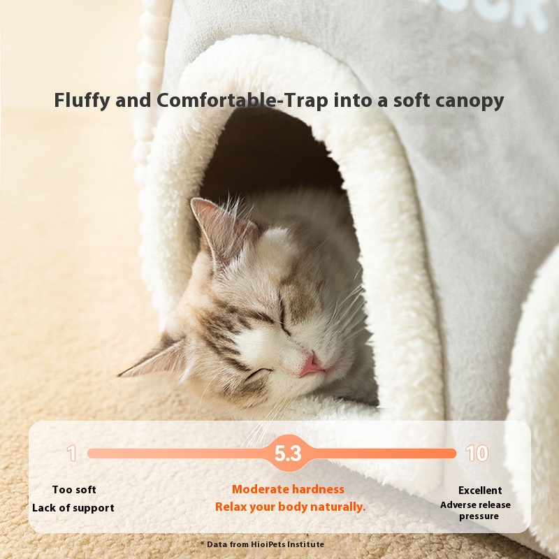 Winter Cat Bed Warm Thickened Semi-enclosed Multi-pet Family Kitten Adult Cat Large Space Cat Bed Dog Kennel Pet Bed Mat