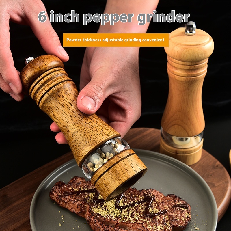 Household Wooden Pepper Grinder Kitchen Manual Rotating Pepper Cumin Pepper Powder Bottle Pepper Mill Spice Bottle
