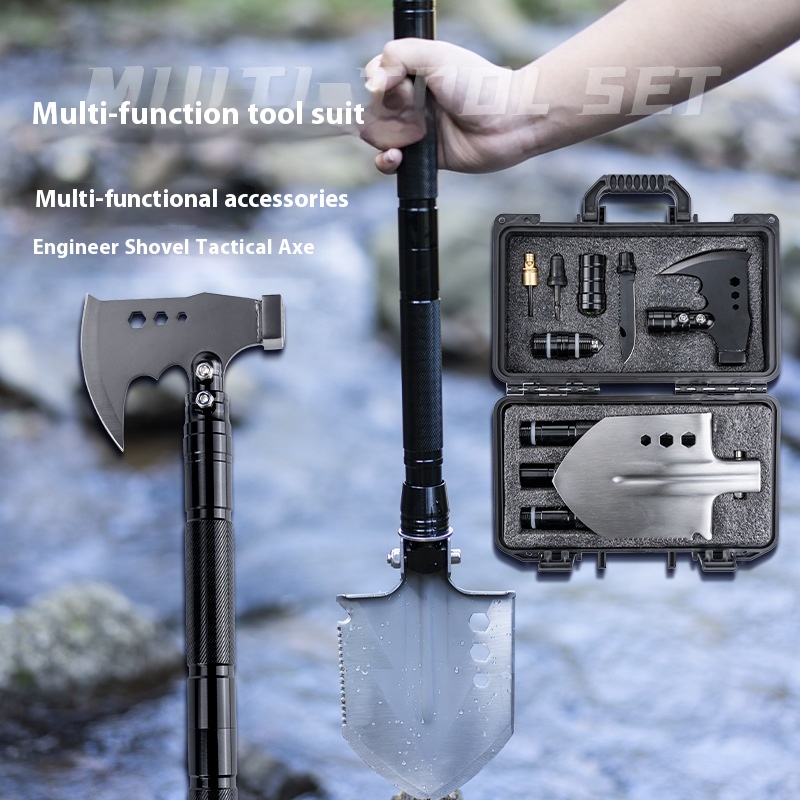 Outdoor Multi-function Military Shovel Set Vehicle-mounted Camping Survival Tools Folding Engineer Shovel Axe Tool Box Set