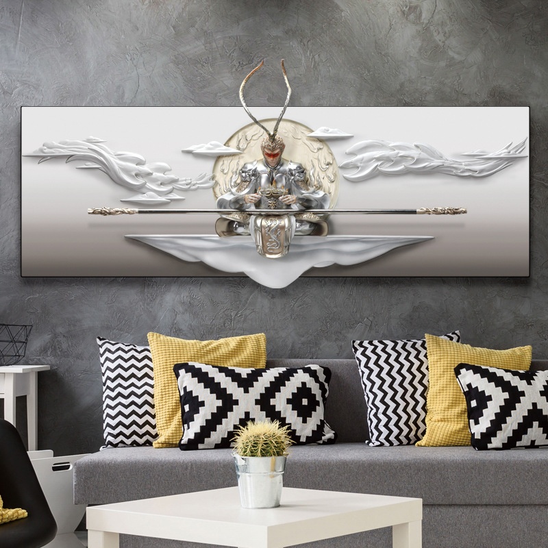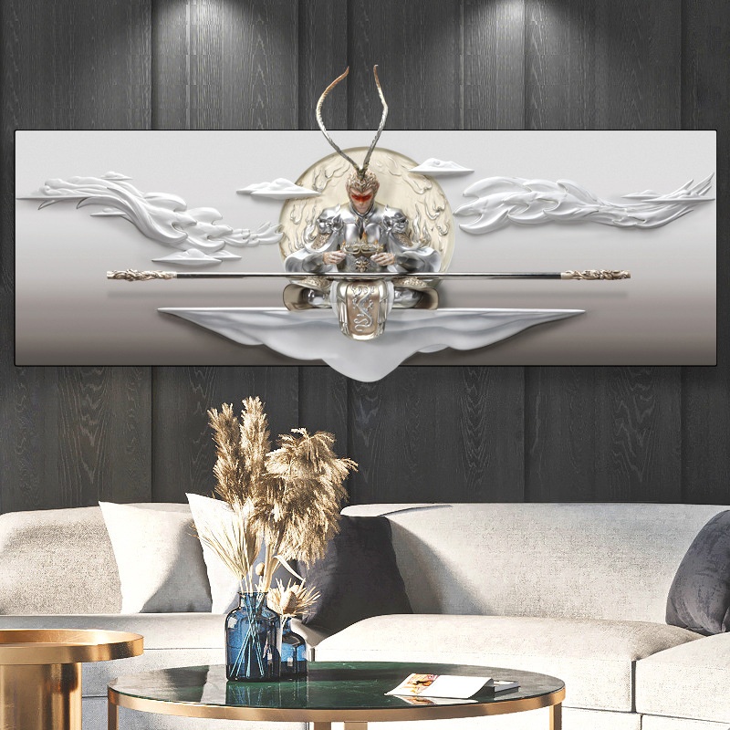 Black Myth Wukong Fighting Buddha Relief Decorative Painting Modern Living Room Sofa Background Wall Painting Bedroom3 DStereoscopic Mural Sun Wukong
