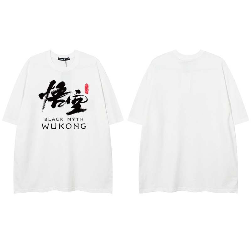 Black Myth:Wukong Short-Sleeve T-Shirt:Casual Hip-Hop Pullover With Dropped Shoulders And High-Street Style