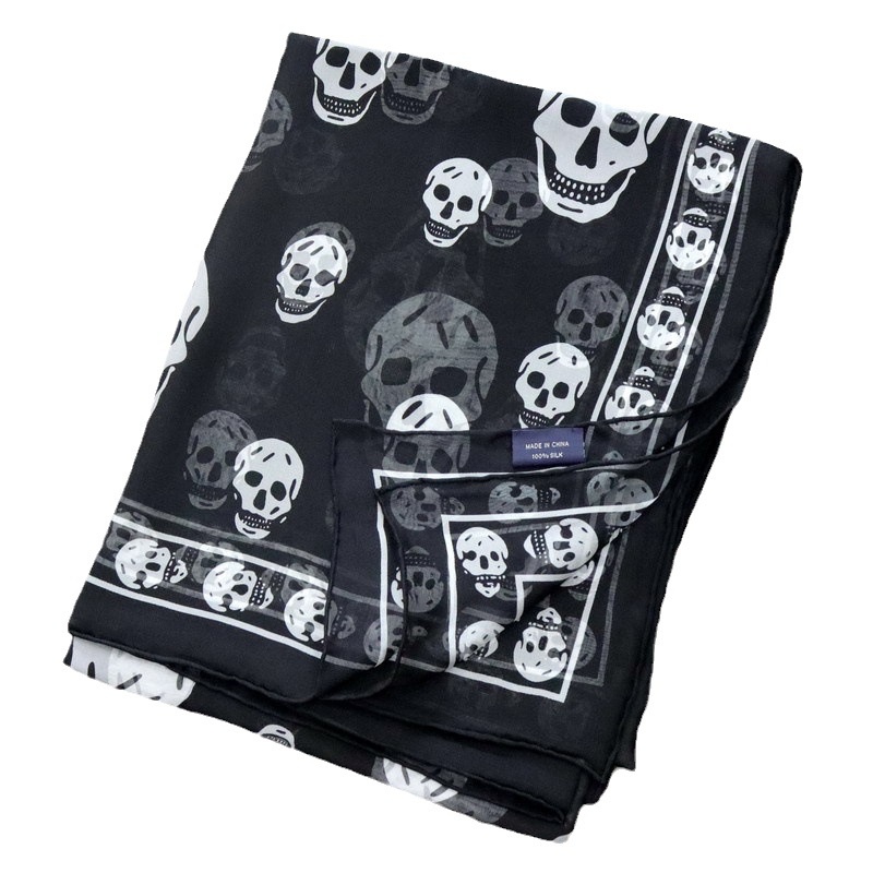 European And American Style Silk Scarf, Classic Multi-color Skull Square Scarf, Silk Mulberry Silk Scarf, Scarf In Stock
