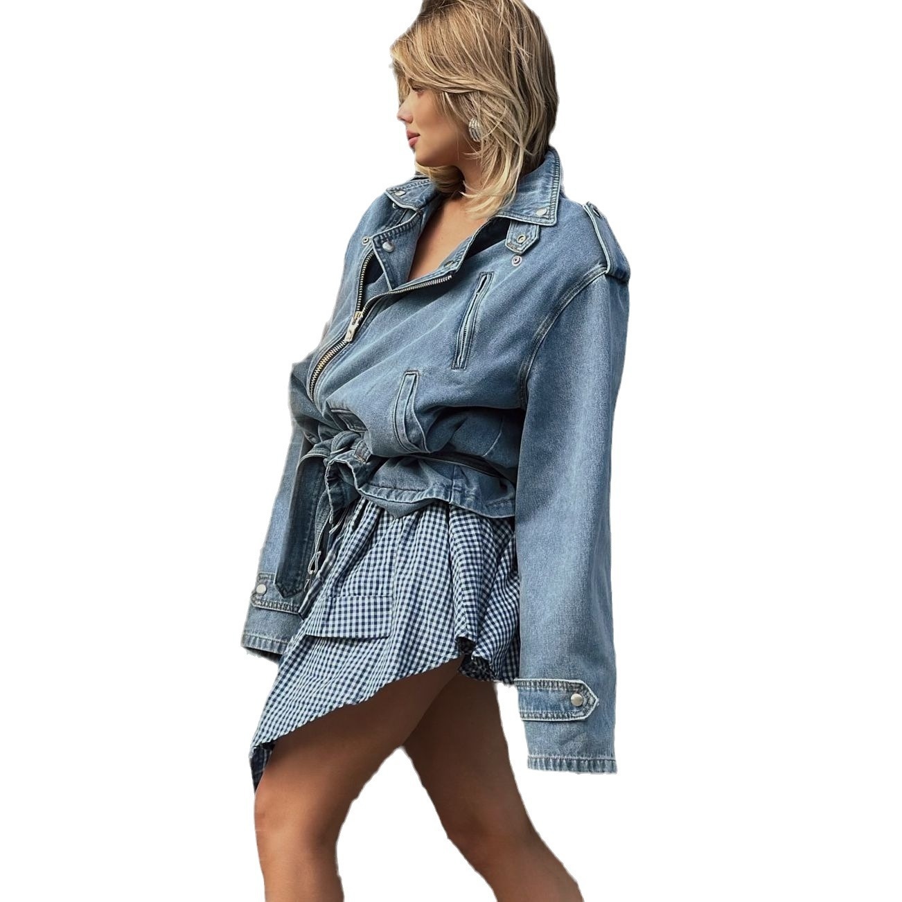 Street Hip-hop Style Denim Jacket Women's Loose Lapel Zipper Denim Jacket
