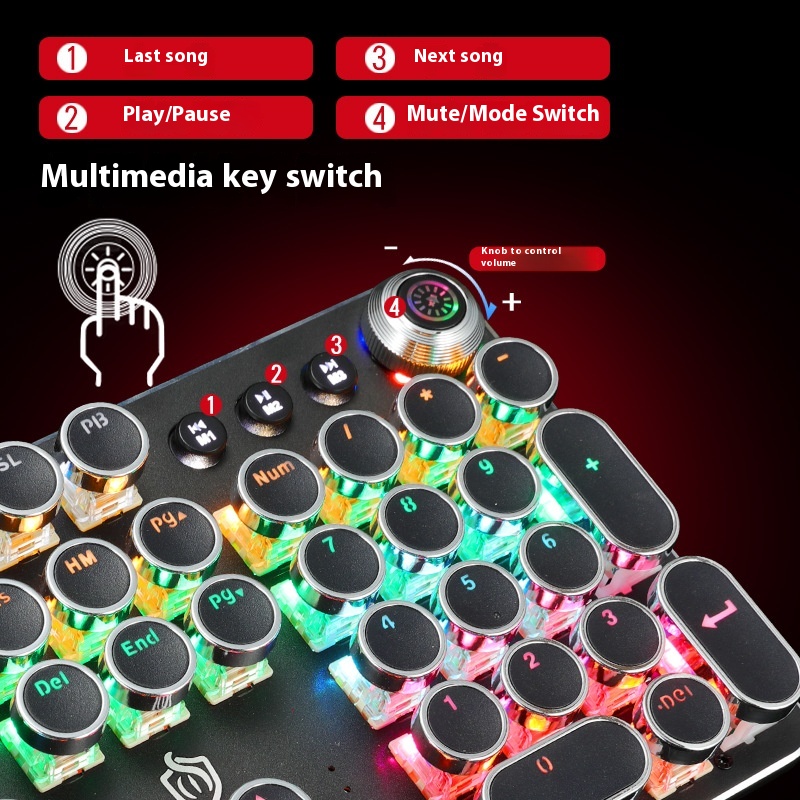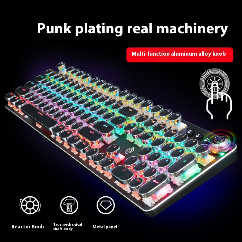 K820 Retro Punk Electroplating Knob Luminous Wired Mechanical Keyboard Plug-in Blue Axis Computer Game