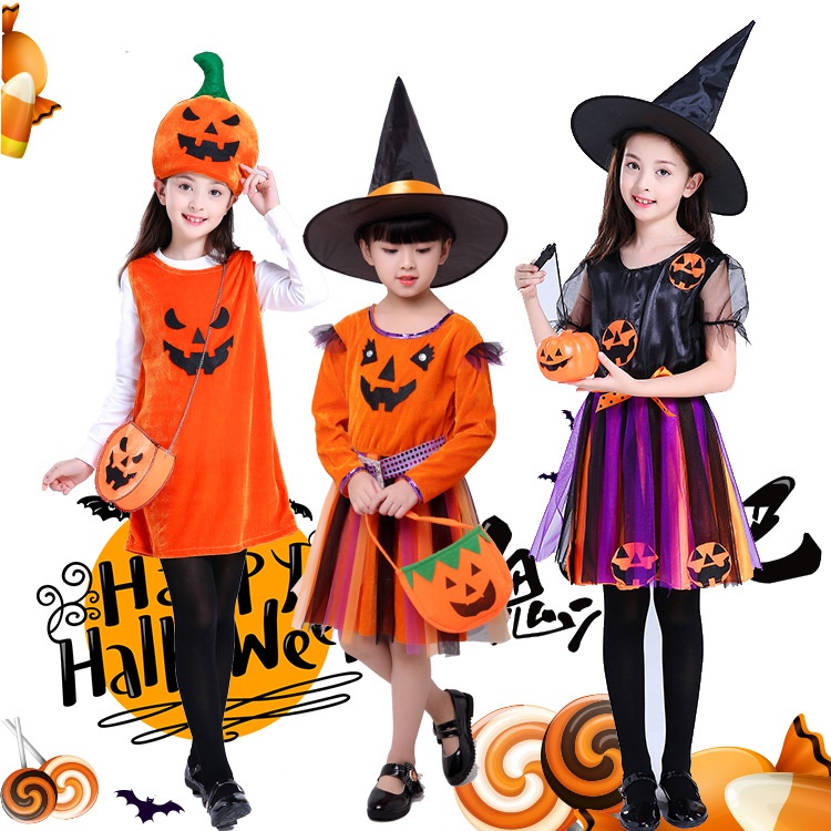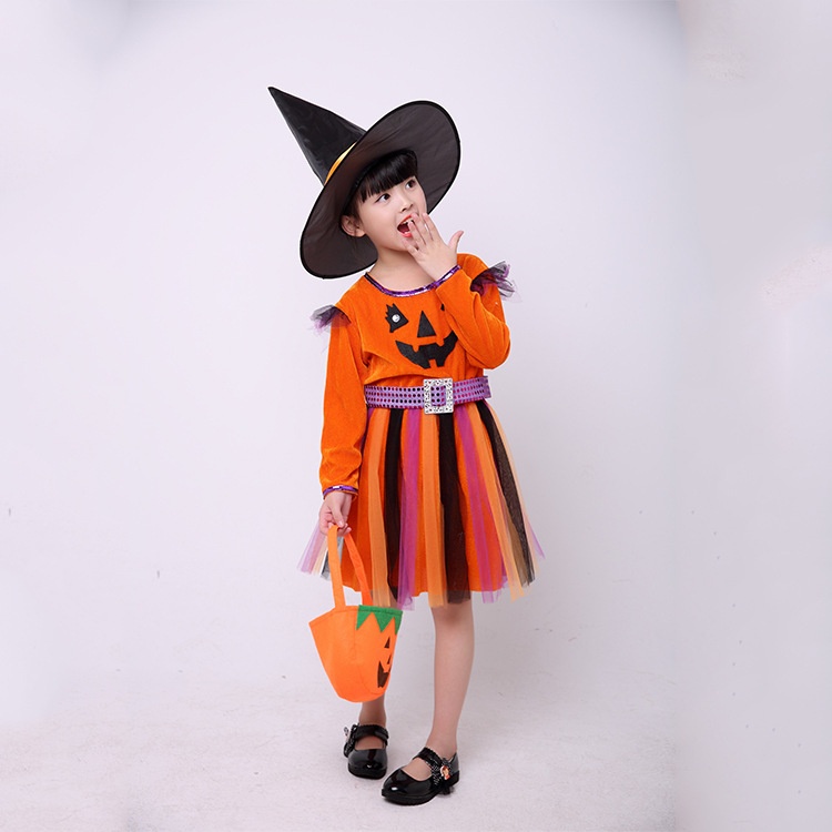 Cosplay Kids Costume,Children's Performance Outfit,Pumpkin Dress Set,Halloween Kids Dance Costume