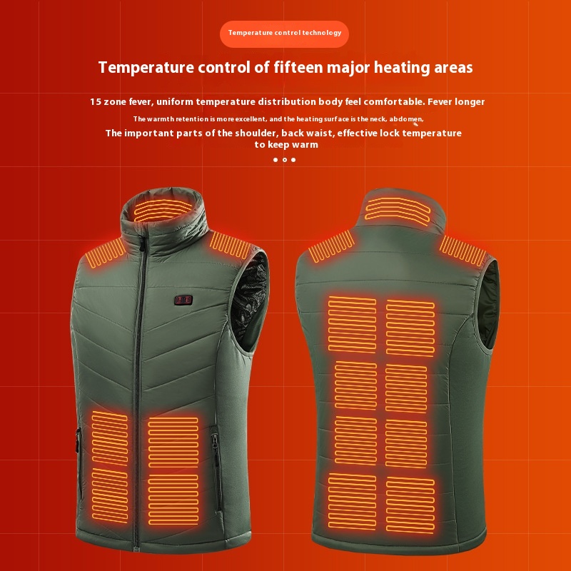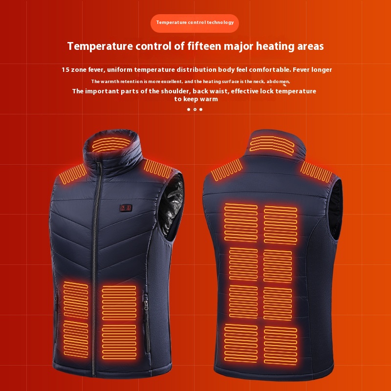 Dual-Control15-Zone Heated Vest,Smart Electric Heated Carbon Fiber Vest,Thermal USBHeated Jacket