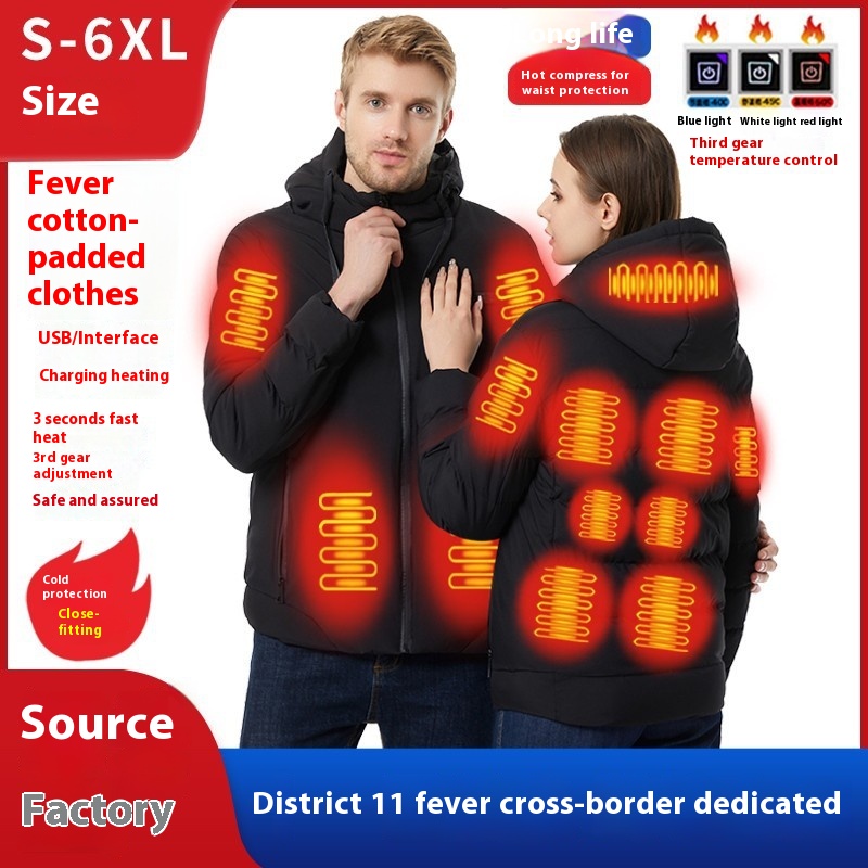 Double Control Eleven Zone Heating Cotton Clothing Winter Couple Thick Warm Hooded Heating Clothing USBElectric Heating Clothing Heating Clothing
