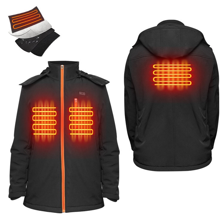 Carbon Fiber Heated Jacket,Outdoory Windproof Thermal Hooded Thickened Heated Coat