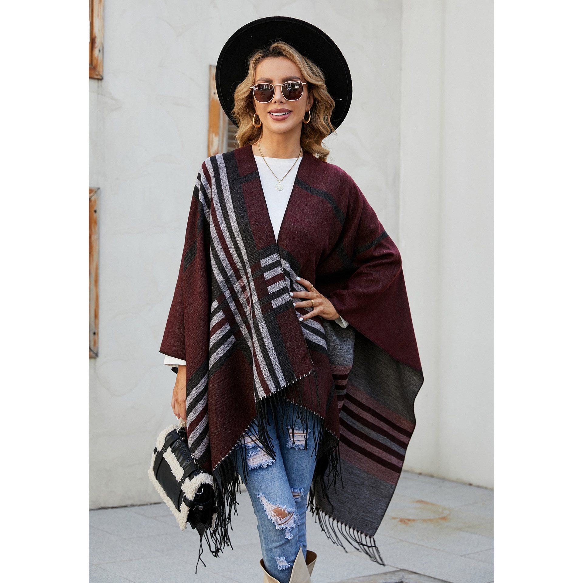 Striped Color Matching Floral Color Matching Travel And Play Warm Imitation Cashmere Large Shawl