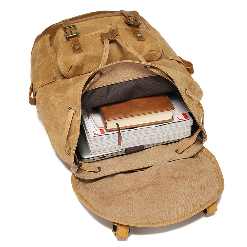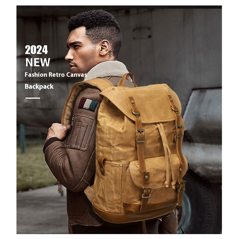 Backpack Men And Women Outdoor Sports Mountaineering Bag Travel Backpack Student School Bag Canvas With Crazy Horse Leather Retro
