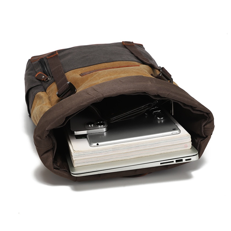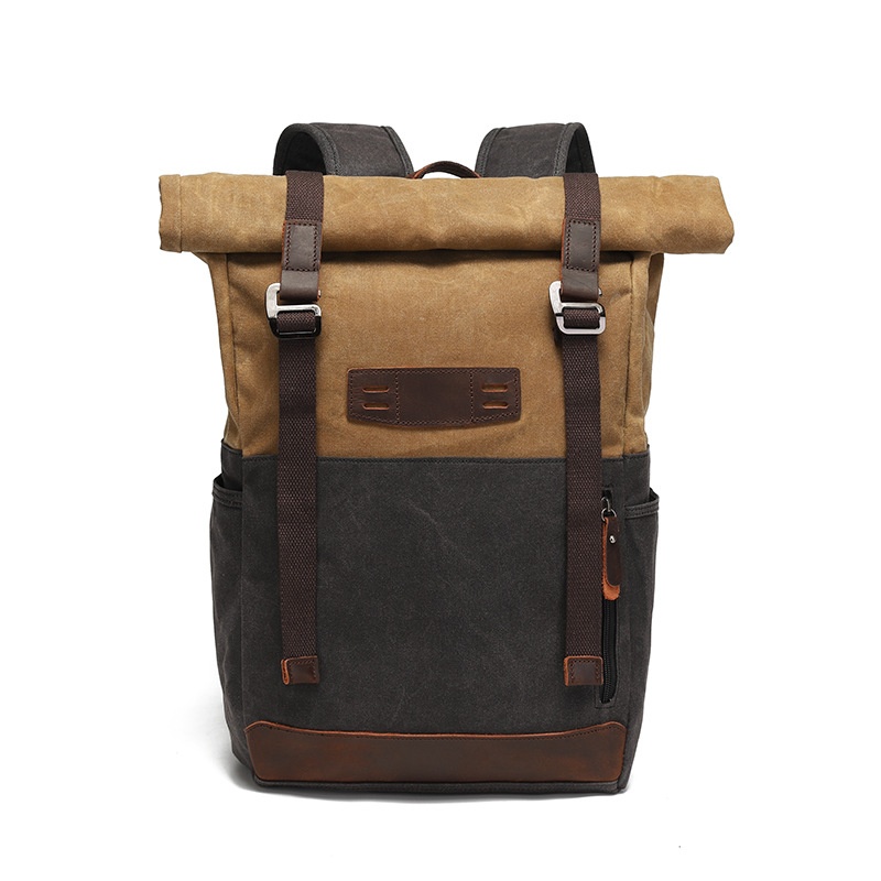 Backpack Men And Women Outdoor Sports Mountaineering Bag Travel Backpack Student School Bag Canvas With Crazy Horse Leather Retro