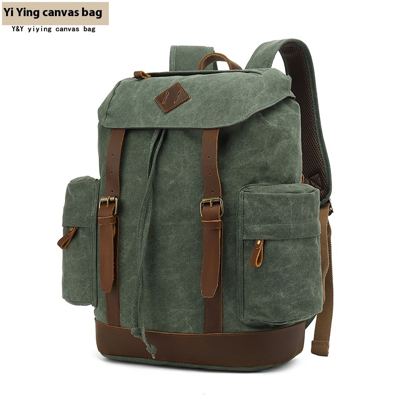Backpack Men And Women Outdoor Backpack Sports Travel Bag Mountaineering Bag Student School Bag Waxed With Crazy Horse Leather